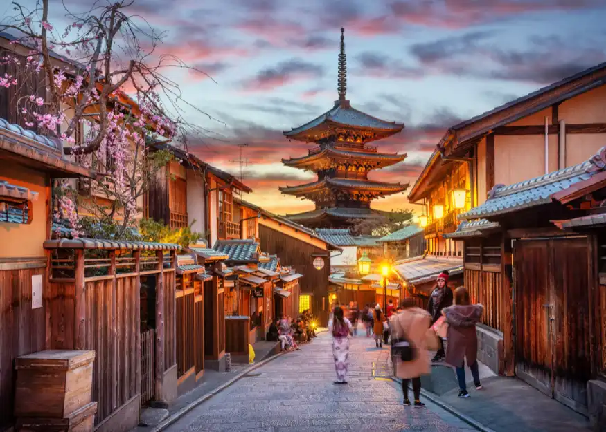 Prima colazione in hotel - intera giornata dedicata alla visita di Kyoto con guida – Tempio Kiyomizudera e le stradine Ninenzaka & Sannenzaka, Santuario Fushimi Inari (il più noto dei 3000 in Giappone ed il più visitato dai pellegrini) – pranzo libero - cena in ristorante – dopocena Kyoto by night, passeggiata con accompagnatore e mezzi pubblici nel quartiere Gion (con le tipiche strade strette e le case basse in legno che ci riportano indietro di 300 anni) e per le vie del distretto di Pontocho, molto noto per la presenza di Geishe - rientro in hotel – pernottamento.